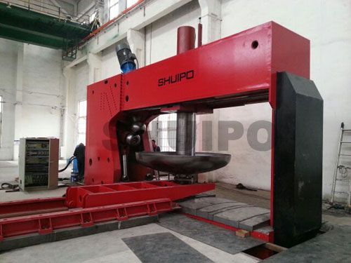 智能旋壓機(jī)是山東水泊焊割設(shè)備制造有限公司(SHUIPO)在總結(jié)了國內(nèi)外旋壓設(shè)備設(shè)計,工藝調(diào)試經(jīng)驗的基礎(chǔ)上,自行開發(fā)、研制的全自動封頭旋壓機(jī)。采用先進(jìn)的PLC可編程控制技術(shù),微電子技術(shù),具有自動化程度高,工作效率高,無需編程,使用方便,運行平穩(wěn),性能可靠等優(yōu)點,壓輪控制電機(jī)采用安川伺服電機(jī),運行精度高,啟動力矩大,運行平穩(wěn),具有過載保護(hù)等功能,不僅提高了效率并且確保了批量生產(chǎn)過程中穩(wěn)定的旋壓質(zhì)量,還改善了操作環(huán)境。