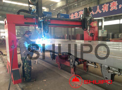 工作中的半掛車底板自動焊接機(激光底板焊接機)