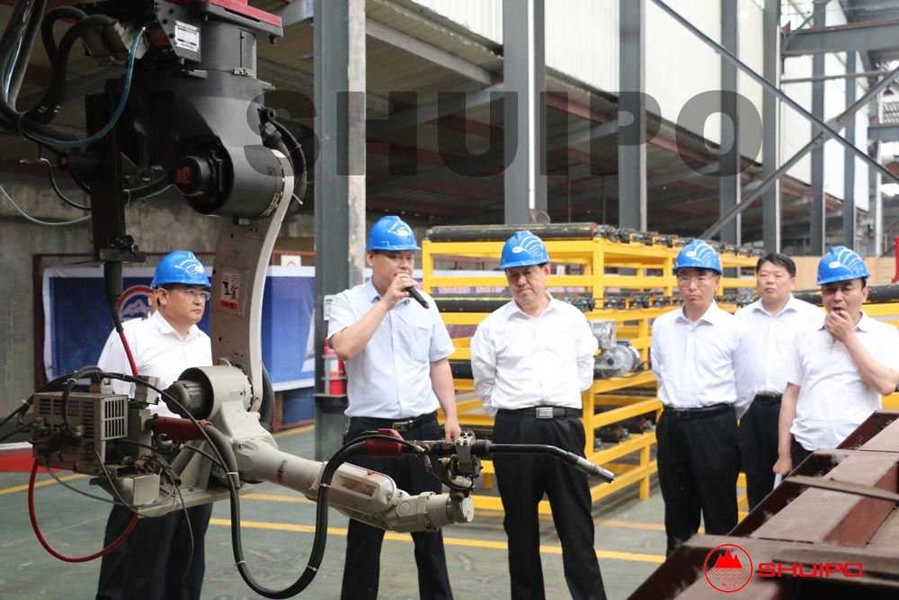 在公司領(lǐng)導(dǎo)的陪同下,張市長(zhǎng)一行先后參觀了水泊焊割智能化裝備車間、汽車零部件智能化生產(chǎn)車間。