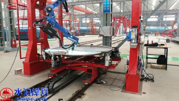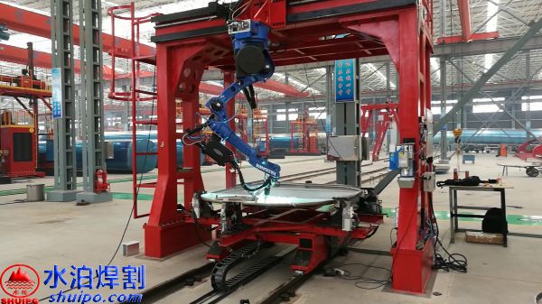 加強筋焊接機器人用于罐體封頭、隔板等加強筋的自動激光掃描、搬運、切割、焊接自動工序,采用PLC可編程控制器自動控制技術(shù)、圖形軌跡采集系統(tǒng)、工業(yè)計算機控制等技術(shù),配備了圖形軌跡運動控制系統(tǒng),使加強筋與封頭的連接處緊密結(jié)合,外形美觀,質(zhì)量可靠、生產(chǎn)效率高、操作簡單方便等優(yōu)點,不僅可提高工作效率,改善操作環(huán)境,而且能提高罐體封頭的自動化程度,可保證批量生產(chǎn)過程中可靠穩(wěn)定的廂板成形質(zhì)量,大大提升改裝汽車產(chǎn)業(yè)和壓力容器的產(chǎn)品檔次。而且它制作的加強筋成形外觀更加圓滑美觀,成形應(yīng)力更小、使用壽命更長。它比手工測量、計算、劃線、裁剪、對中、矯正、焊接,工作效率更高、并可節(jié)省大量人力資源。
